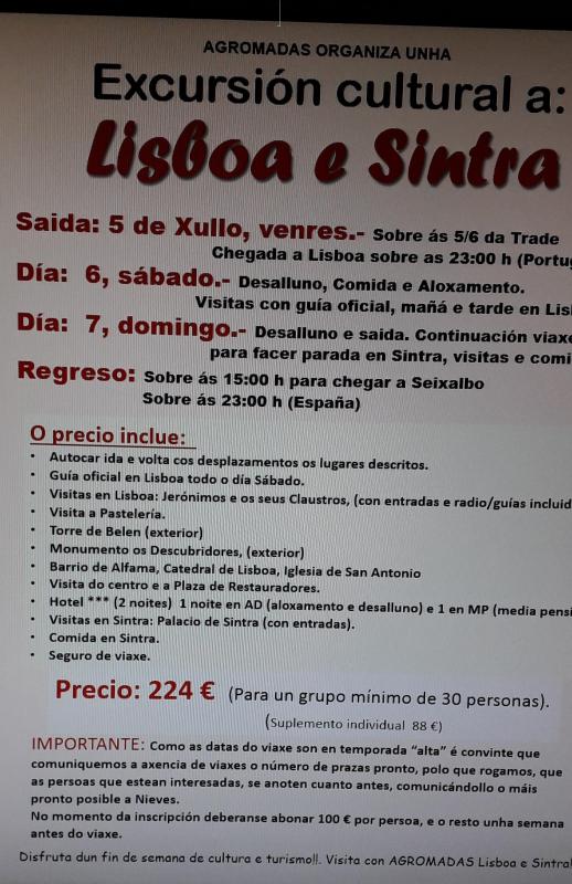 Agromadas organiza unha excursión cultural a Lisboa e Sintra